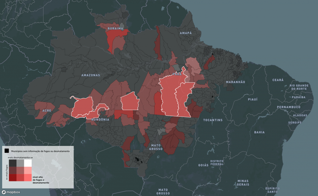Os mapas confirmam a relação das queimadas com o ciclo de desmatamento, em que o fogo é usado para queimar a vegetação derrubada, liberando o terreno desmatado.