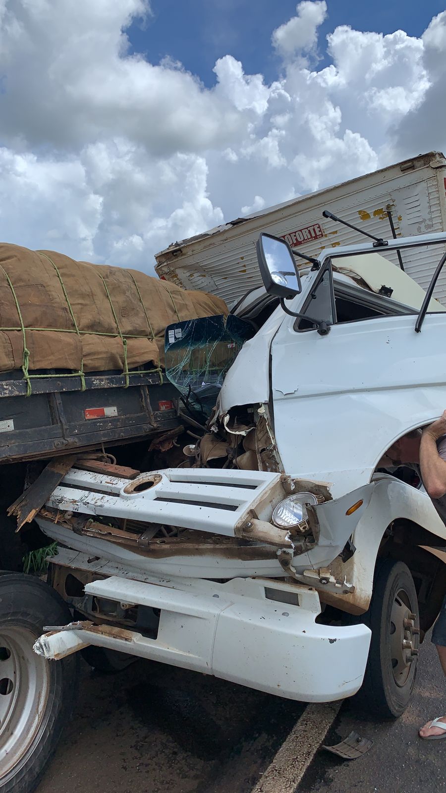 Segundo o Corpo de Bombeiros, o motorista de um dos caminhões perdeu o controle do veículo e bateu na traseira de outro caminhão que estava parado às margens da rodovia.