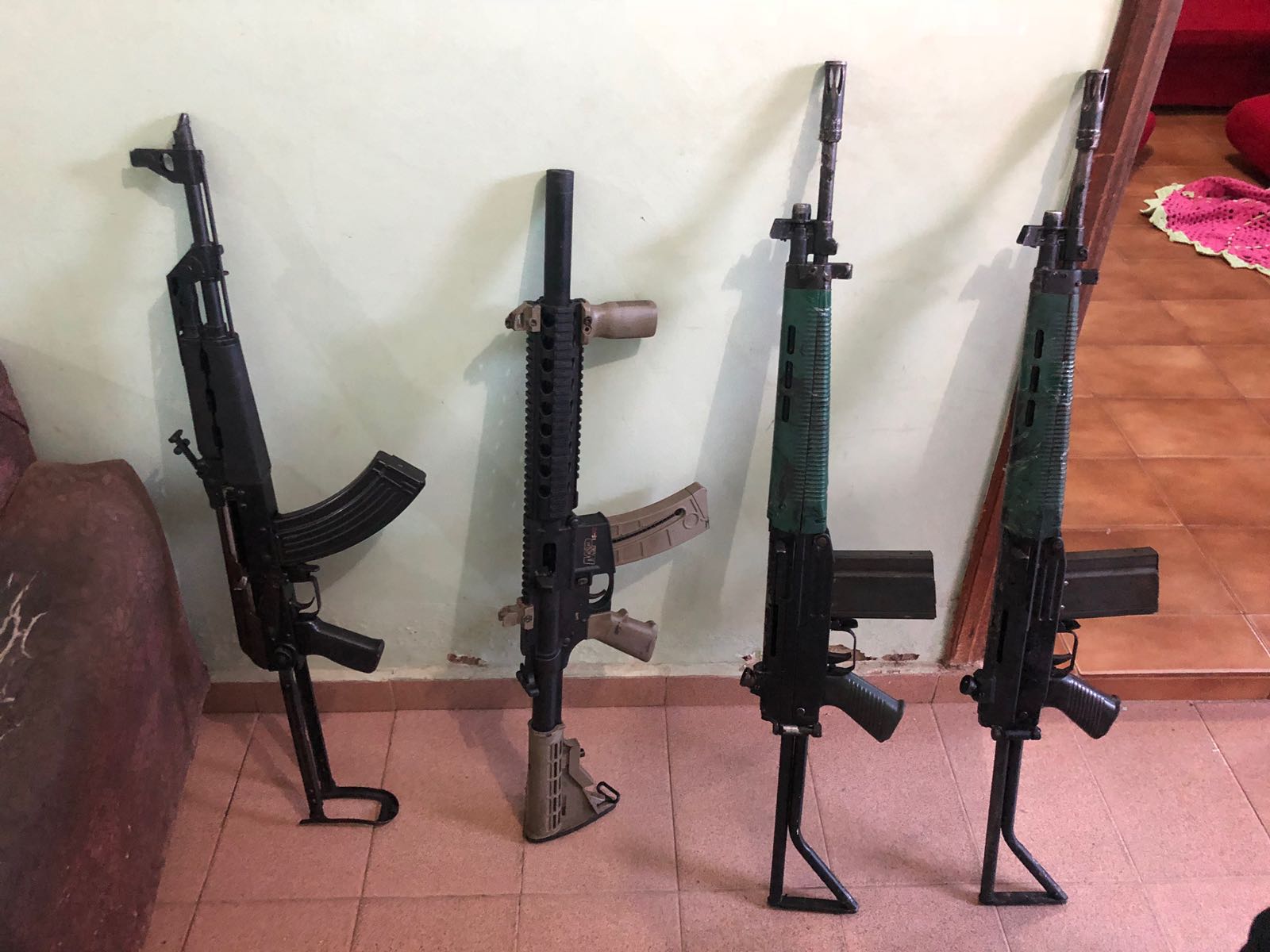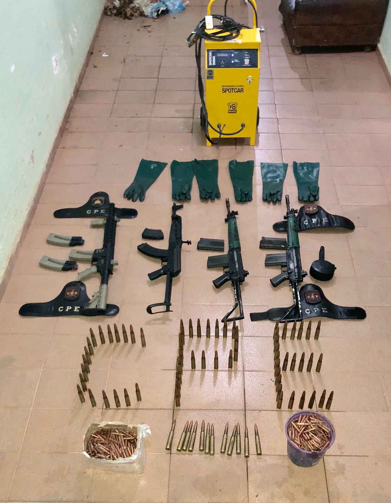 Com o grupo, os policiais apreenderam três fuzis calibre 7,62 milímetros, uma carabina calibre 22, 657 munições calibre 7,62, 69 munições calibre 50, seis carregadores calibre 7,62, três carregadores calibre 22, um carregador modelo caracol calibre 9 milímetros e diversos materiais que auxiliavam na explosão de caixas eletrônicos e cofres bancários.