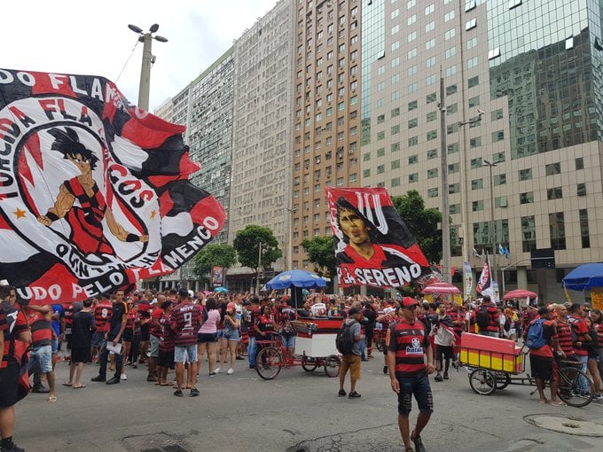 Voo do Flamengo chegará ao Rio com atraso; Torcedores já festejam na Candelária
