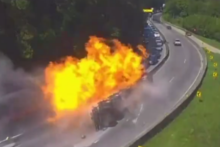 Acidente Caminhão tomba, explode na BR-101 e chamas destroem 24 veículos Cinco pessoas ficaram feridas, entre elas os dois ocupantes do caminhão que tombou e explodiu, que sofreram queimaduras leves há 7 mêss