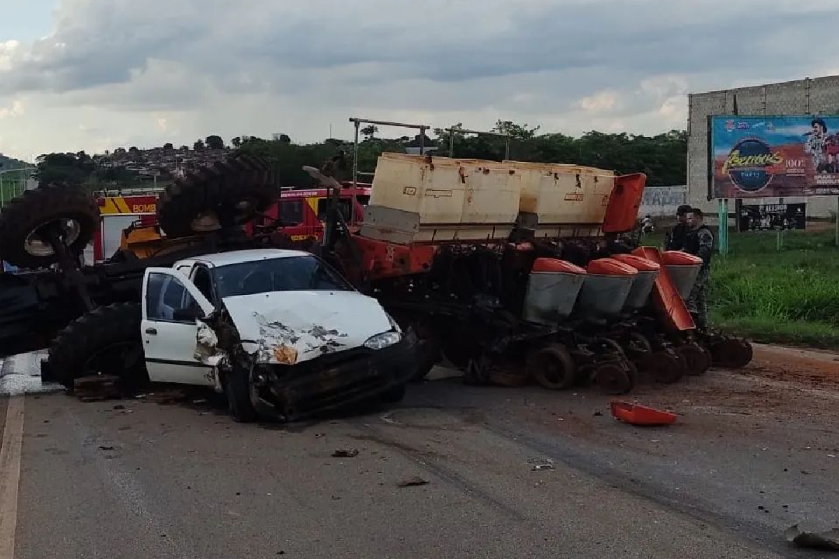 De acordo com os militares, o acidente aconteceu no quilômetro 37 da GO-070. Os bombeiros não souberam informar qual foi a dinâmica do acidente. Imagens, porém, mostram que o trator equipado com sementeira aparece tombado ao lado do carro de passeio.
