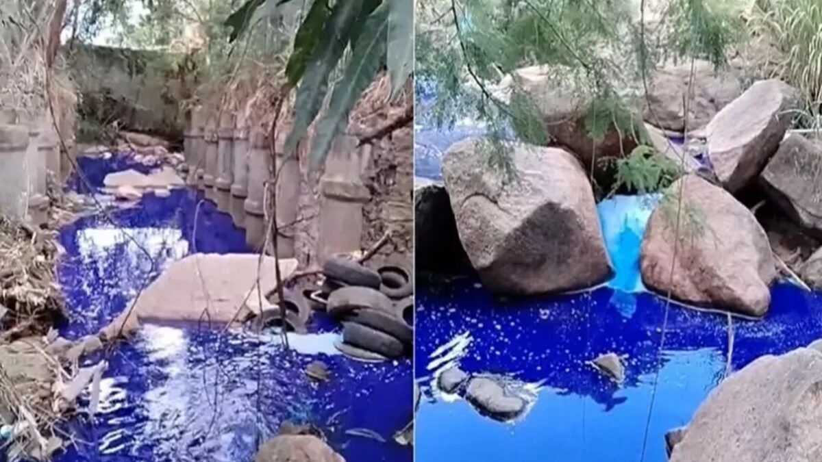 (DA FOLHAPRESS) Um córrego localizado em Salto (SP) amanheceu ontem completamente azul depois do descarte ilegal de tinta no local.