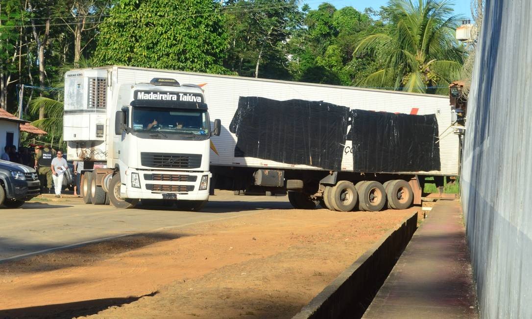 Caminhão usado para armazenar corpos de detentos mortos em rebelião no Pará (Foto: STRINGER / REUTERS/Agência O Globo)