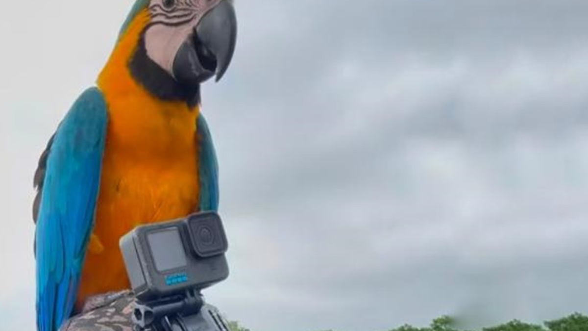 Arara pousa em cima da cabeça de cantor durante pescaria em Paraúna