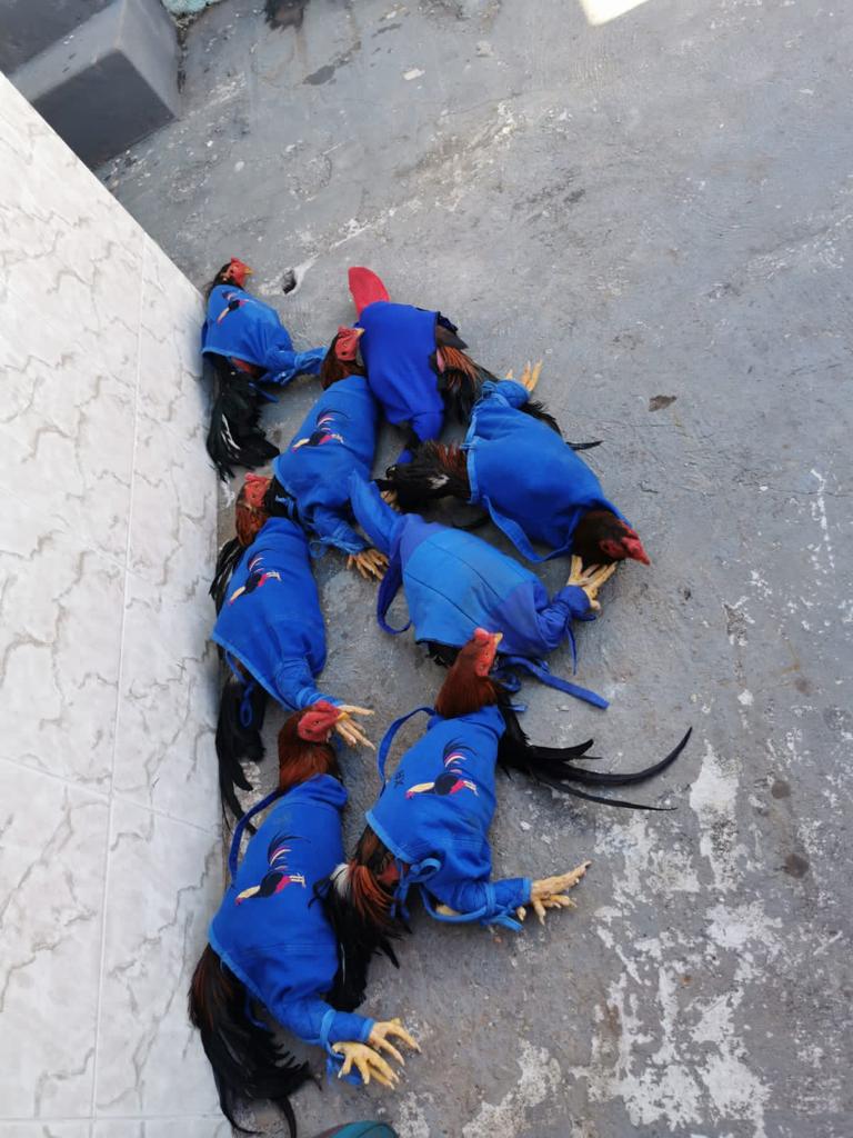 Cinco galos já haviam brigado quando a polícia chegou e, conforme o tenente Gustavo, alguns já estavam bastante machucados. “Tinha um que estava com os dois olhos furados e o pescoço todo machucado”, detalha.