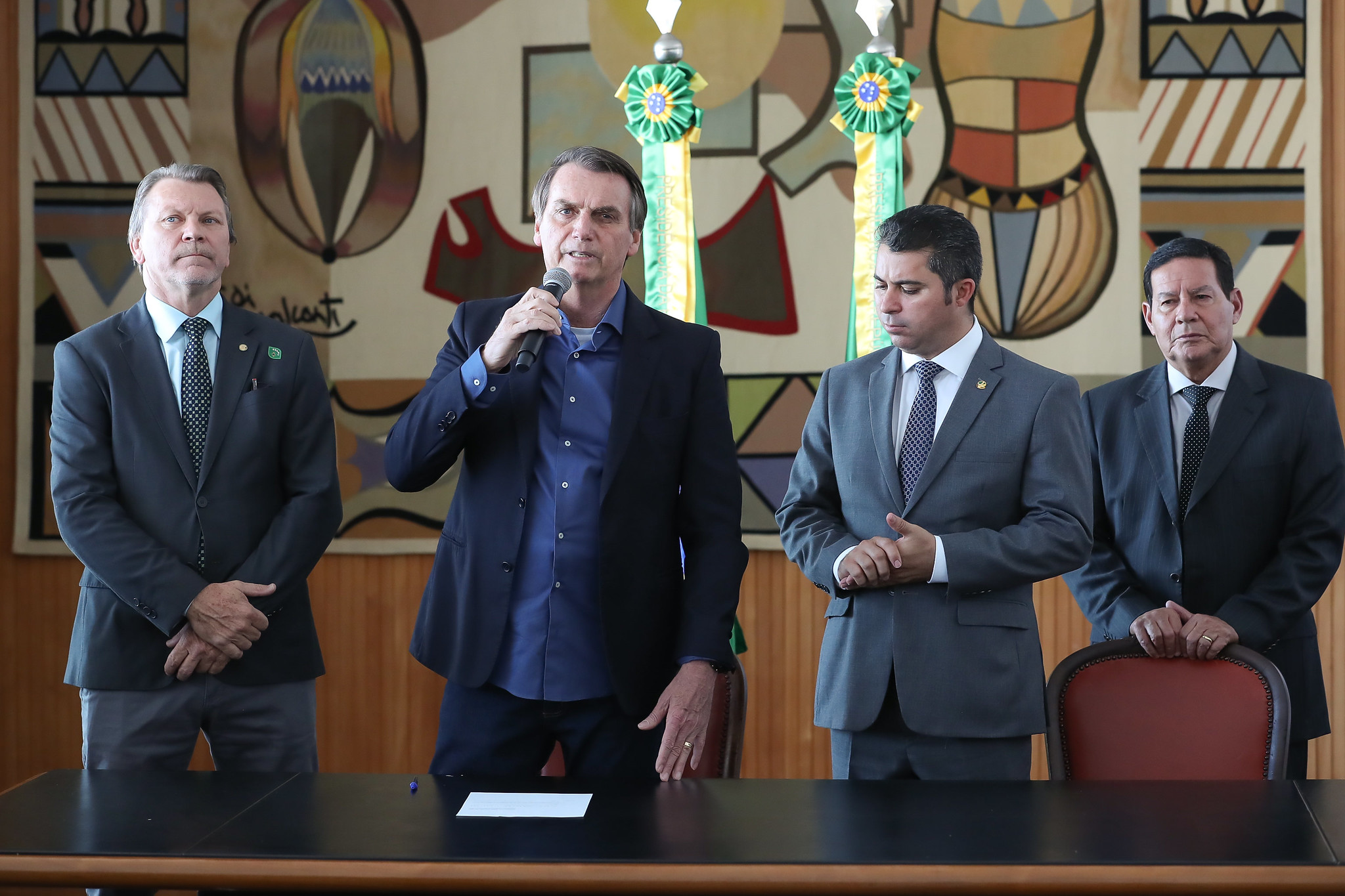 Durante a cerimônia, o presidente Jair Bolsonaro fez um apelo a deputados e senadores para ajudarem na aprovação da proposta do governo que amplia para 40 pontos o limite para suspensão da carteira de motorista.