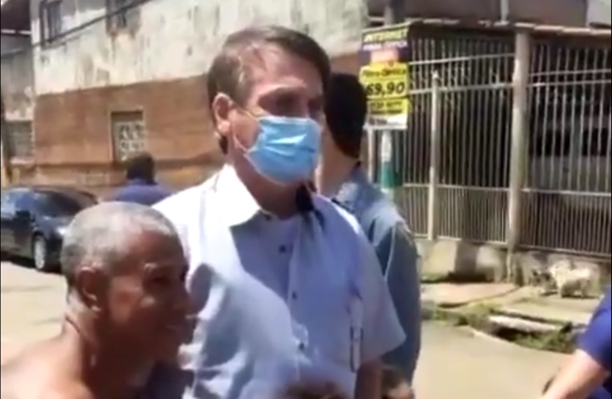 O presidente da República, Jair Bolsonaro, visitou neste sábado (20) o bairro de Chaparral, em Taguatinga, no Distrito Federal (DF), onde aproveitou para gravar vídeo com os moradores locais e criticar as medidas de distanciamento social.