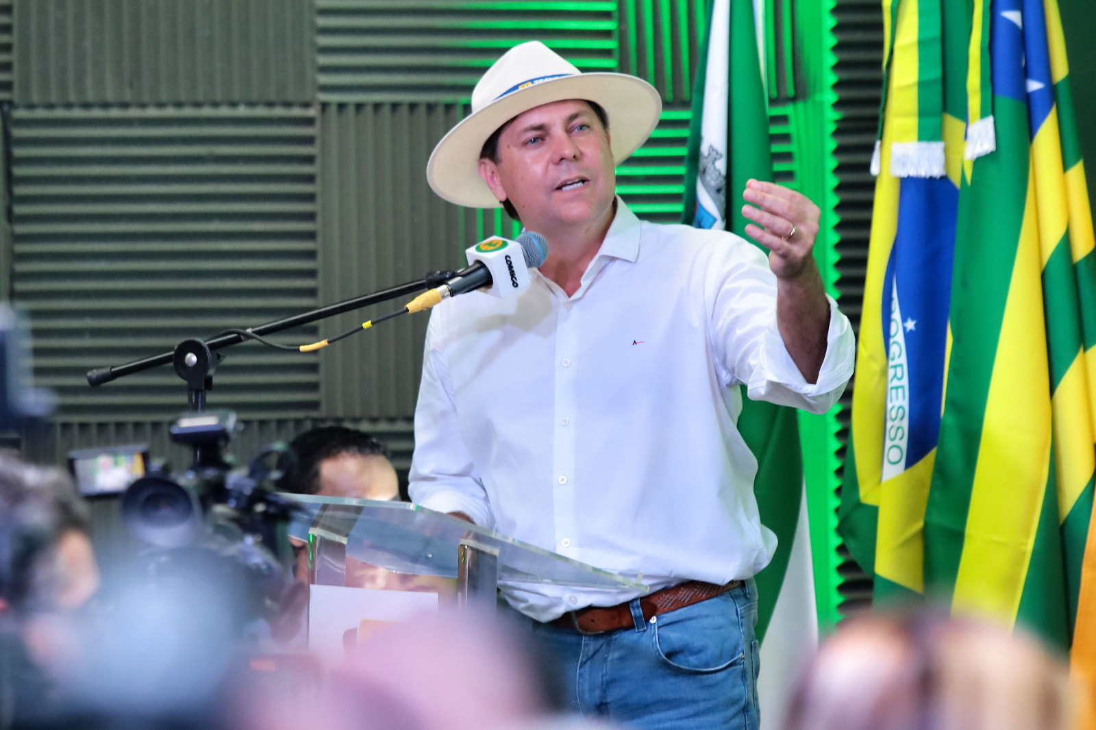 “Me deem dois anos e vão ver o resultado na infraestrutura”, completou, sob aplausos e coro de “Caiado, Caiado, Caiado…”, por parte da plateia que se colocou nas primeiras filas do espaço montado para a cerimônia.