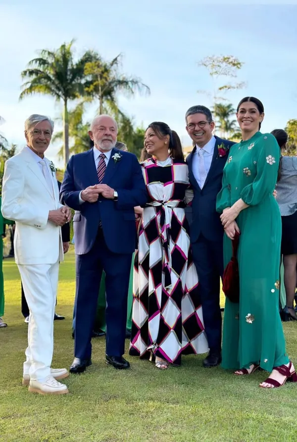 Caetano Veloso e Paula Lavigne tiveram lugar de destaque no casamento do senador Randolfe Rodrigues e da advogada Priscila Barbosa, que aconteceu nessa sexta, em Brasília. O músico entrou com Paula como padrinhos, assim como o presidente Lula e a primeira-dama Janja.