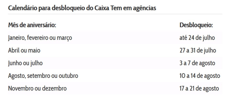 Já as pessoas com conta bloqueada por suspeita de fraude precisam procurar uma agência da Caixa, respeitando o seguinte cronograma: