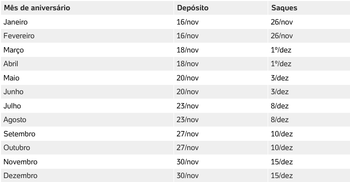 Veja a seguir o cronograma completo dos próximos pagamentos divulgados: