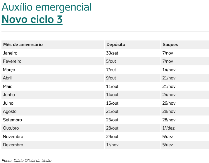 Veja a seguir o cronograma completo dos próximos pagamentos divulgados:
