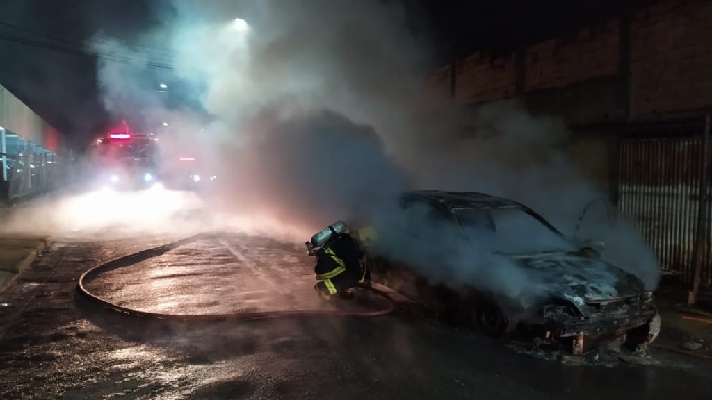 Carro pega fogo no meio da rua em Catalão e bombeiros desconfiam de ação criminosa