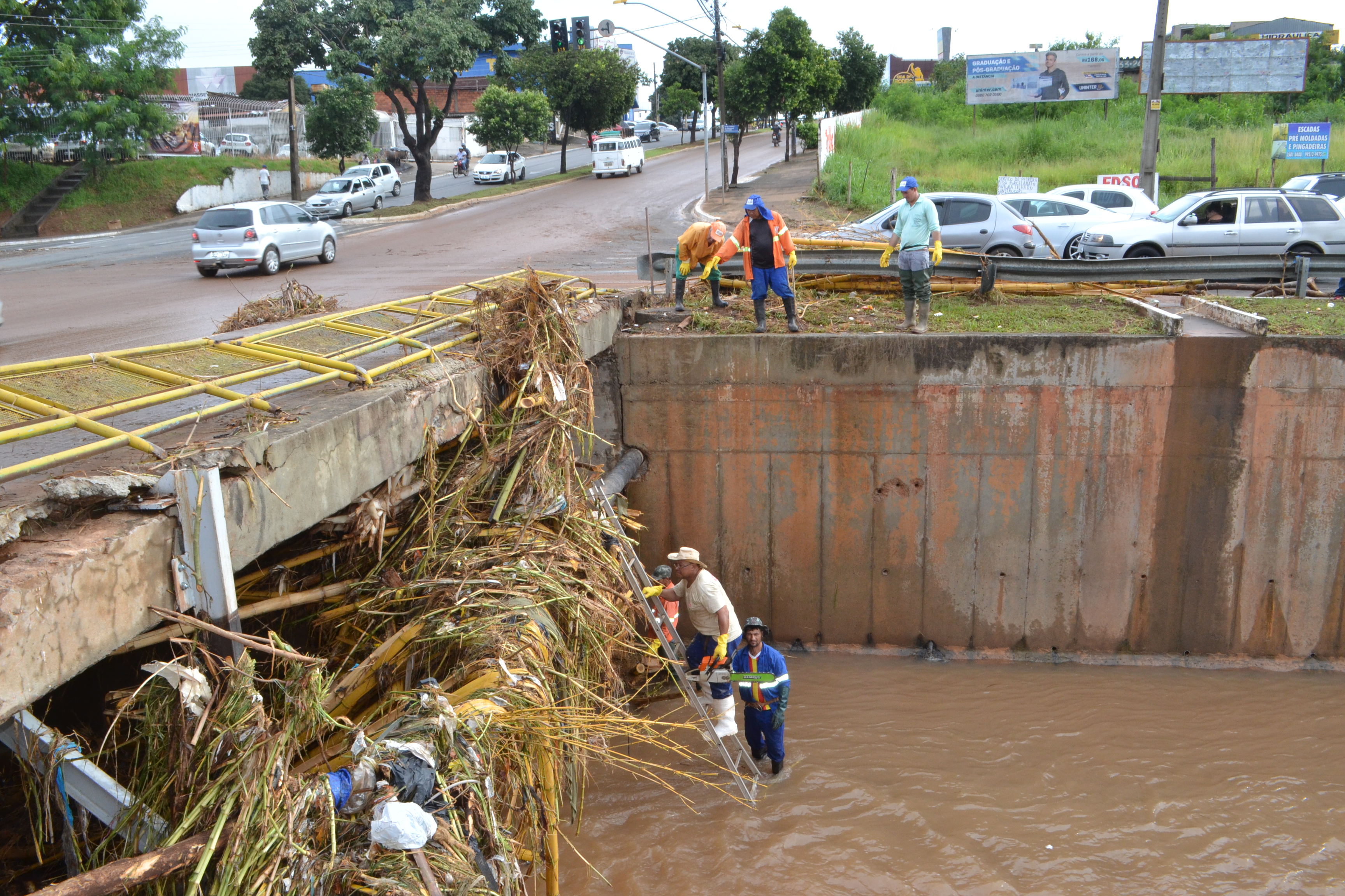 A Secretaria Municipal de Trânsito (SMT) informou que equipes auxiliaram em diversos pontos da cidade, como a Marginal Botafogo, onde parte do asfalto cedeu. Os agentes também auxiliaram o trânsito no cruzamento da Avenida 85 com a Rua T-53, no Setor Marista, onde semáforos ficaram inoperantes.