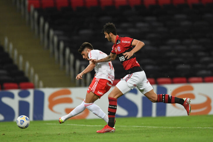 Apesar de estar atrás do placar, o Flamengo teve a posse de bola, mas não contou com o brilho de suas principais estrelas. Gabriel e Arrascaeta estavam apagados. Coube a Bruno Henrique tentar diminuir o prejuízo, mas a cabeçada ficou na defesa do goleiro Daniel. O time carioca errou muito nos 45 minutos iniciais e foi para o intervalo com 2 a 0 favorável ao Internacional.