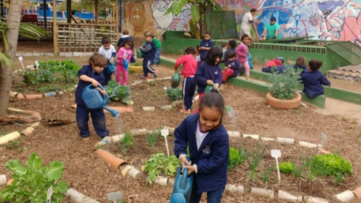 “Hoje é uma escola feita para crianças”, explica Harmbach, que se aposentou em 2022. Antes, a instituição não tinha um ambiente pensado com e por crianças, como o uso de um mobiliário lúdico que se espalha pelo pátio.