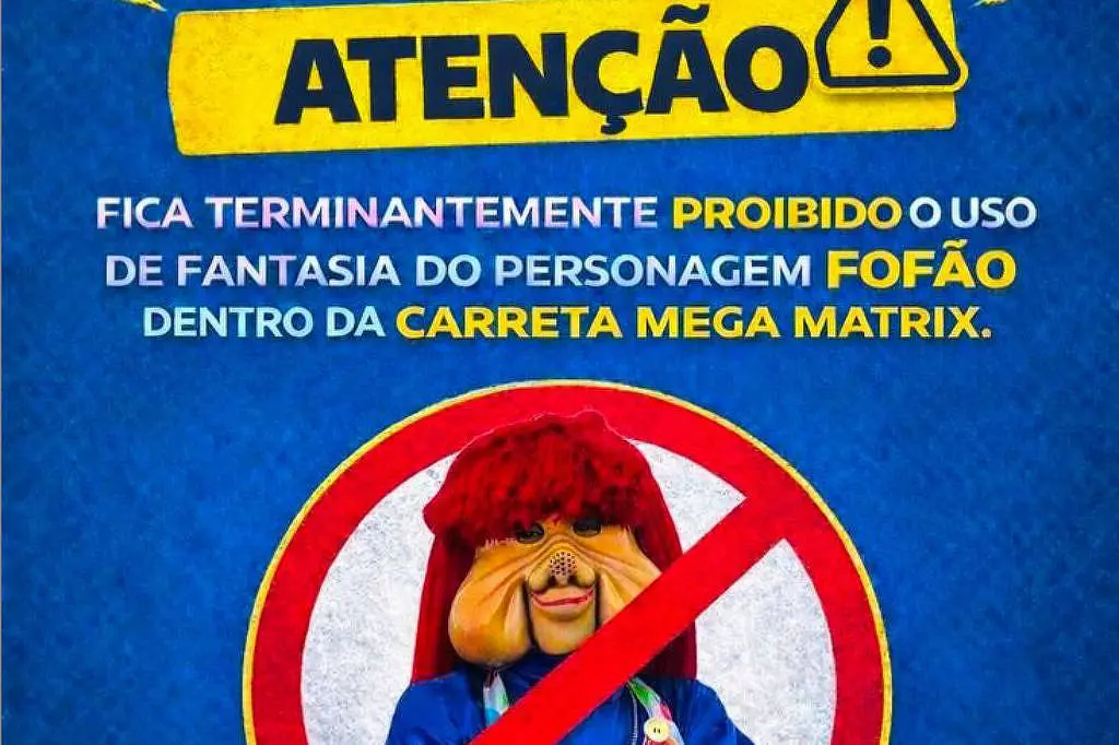 O personagem em questão é o Fofão, figura bochechuda que fez sucesso nos anos 1980 em programas infantis como “Balão Mágico”. De acordo com a empresa responsável pela Carreta, há contrato de exclusividade para uso do personagem em apresentações ligadas ao grupo.