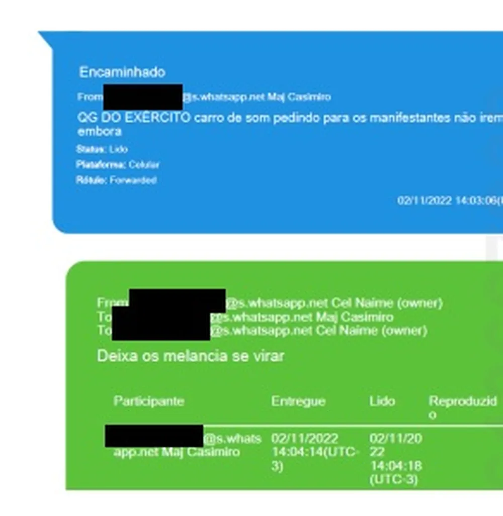 A primeira mensagem destacada pelos investigadores foi enviada por Klepter Gonçalves a Fabio Vieira, em 28 de outubro de 2022 — dois dias antes do segundo turno das eleições.