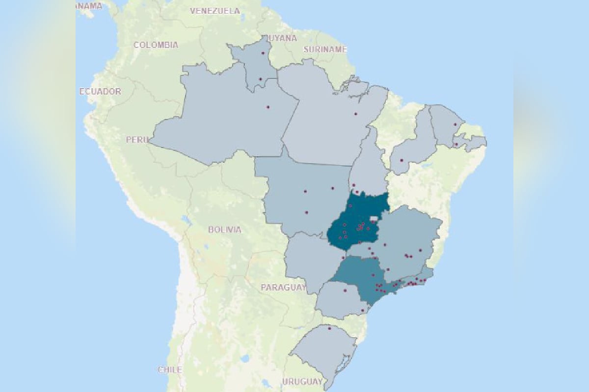 Mapas extraído de sistema da PF exibe a localização de possíveis compradores dos materiais ilícitos no país: