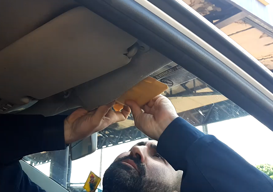 Segundo a PRF, os cheques estavam escondidos sob o forro do teto do carro
