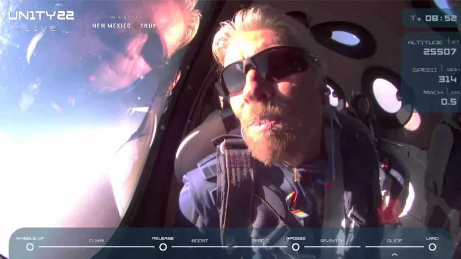 O bilionário Richard Branson decolou neste domingo (11) a bordo de uma nave da sua própria empresa, a Virgin Galactic, junto com outros três passageiros e dois pilotos, rumo ao espaço. Após passar alguns minutos em gravidade zero, o empresário voltou à Terra e comemorou o sucesso da primeira missão turística da companhia.
