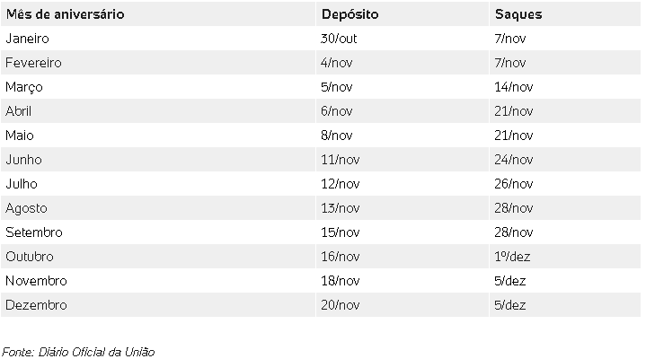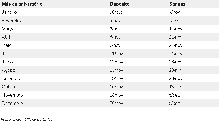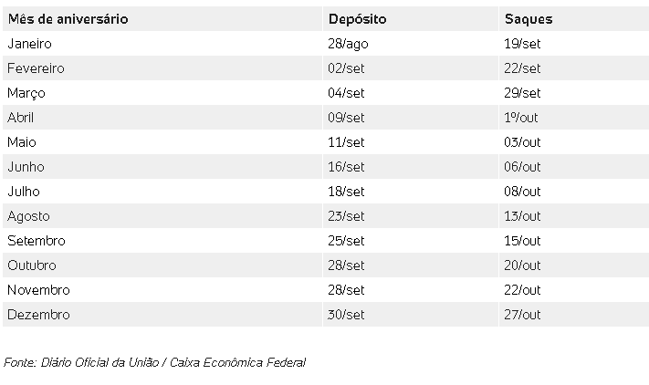 A fase de depósitos do ciclo 2 terminou em 30 de setembro. No entanto, a Caixa seguira liberando saques e transferências até 27 de outubro, conforme a coluna da direita do cronograma abaixo: