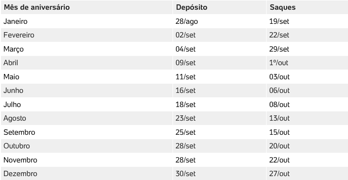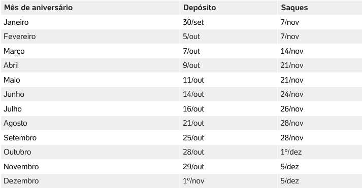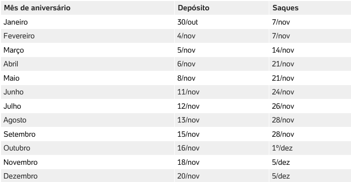 A fase de depósitos do ciclo 2 terminou em 30 de setembro. No entanto, a Caixa seguira liberando saques e transferências até 27 de outubro, conforme a coluna da direita do cronograma abaixo: