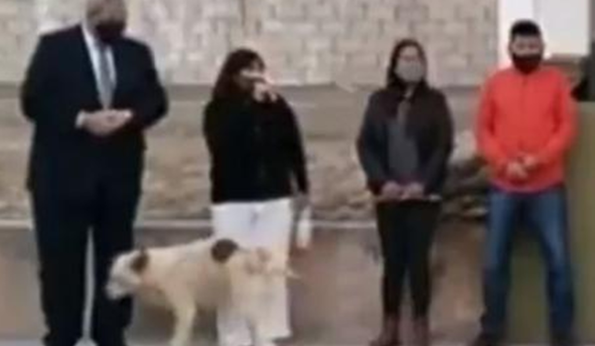 Cão urina em prefeita de cidade argentina durante discurso; veja