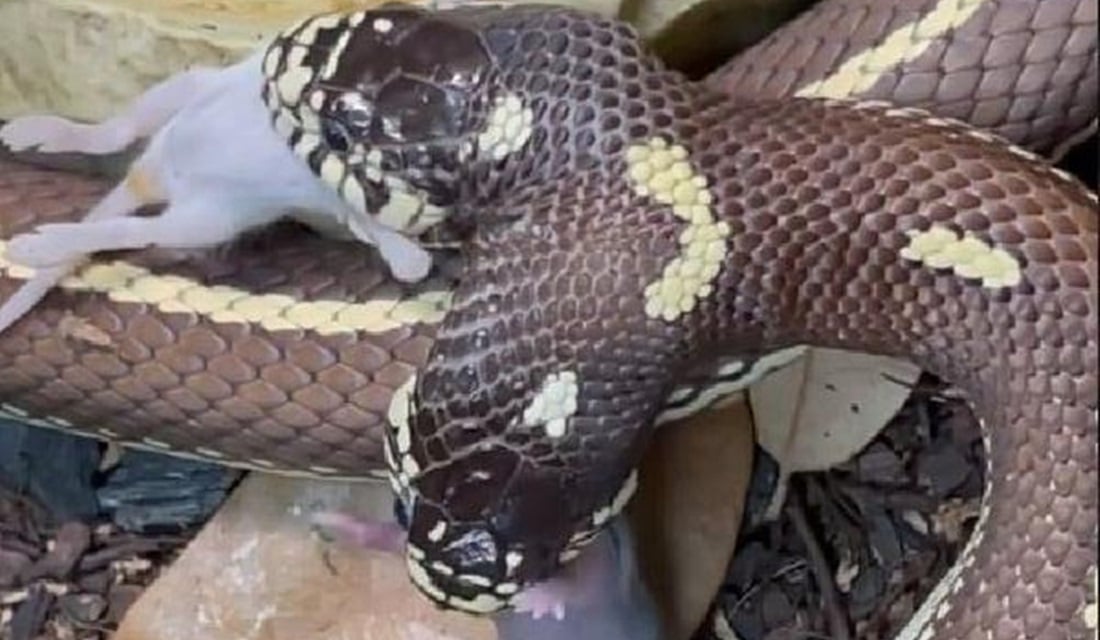 Cobra de duas cabeças engole dois ratos ao mesmo tempo, nos EUA; veja