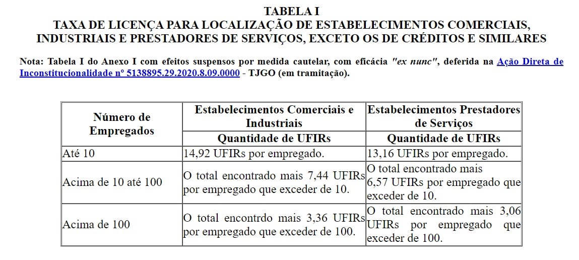 A prefeitura de Goiânia modificou a forma como é feito o cálculo para a cobrança anual da Taxa de Licença para Localização e Funcionamento para 2022. Anteriormente, o tributo era cobrado com base no número de empregados do estabelecimento industrial, comercial e prestador de serviço. Por decisão do Tribunal de Justiça de Goiás (TJ-GO) a conta passou a ser feita pela metragem.