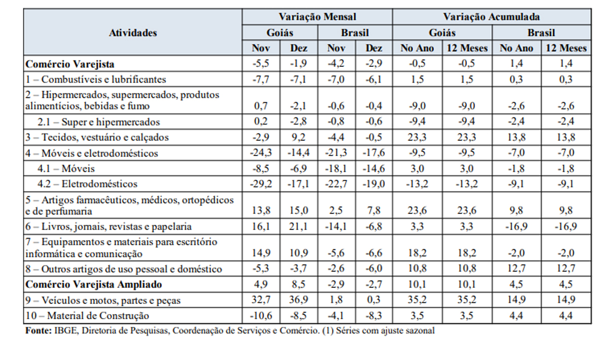 Veja a tabela de comércio varejista e comércio varejista ampliado: