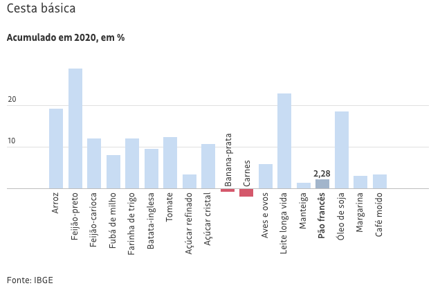 O IPCA (Índice de Preço para o Consumidor Amplo) —a inflação oficial— acumula alta de 2,44% nos 12 meses até agosto. Mas, apenas em 2020, os alimentos acumulam alta de 4,91%.
