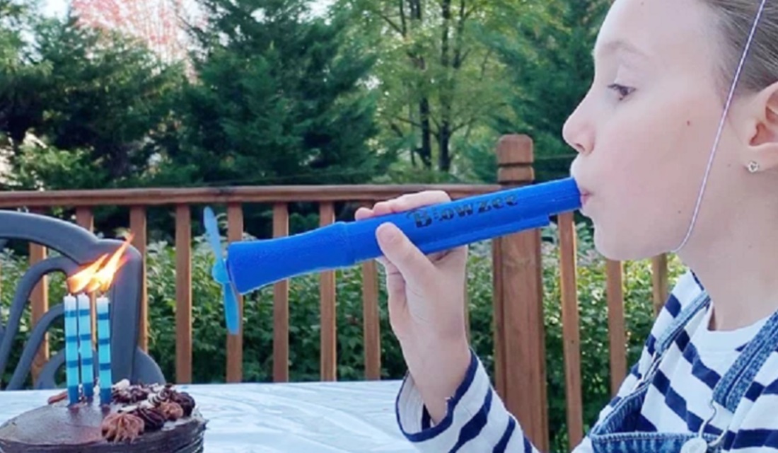Após horas e horas projetando um aparelho prático e que caísse nas graças das crianças, Apelt chegou até o que batizou de Blowzee. Nele, os aniversariantes assopram um tubo que faz uma hélice girar, levando o vento sem carregar os microrganismos da saliva.
