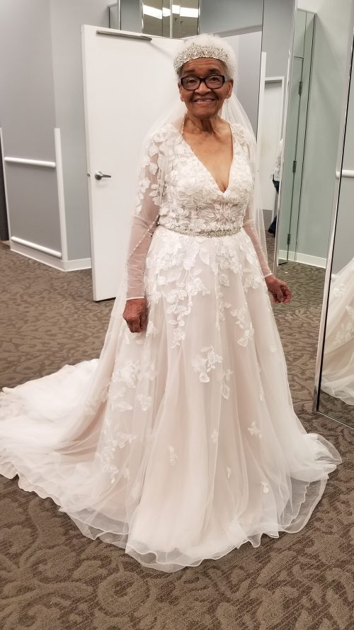 Porém, sete décadas depois, ela conseguiu realizar o sonho. Toda história veio à tona após a idosa ver uma cena do filme Um Príncipe em Nova York, que é estrelado por Eddie Murphy, e que aparecia uma cena de casamento. Com isso, ela revelou o desejo para a neta, Angela Strozier. “Sempre quis experimentar um vestido de noiva. Quando me casei, não tinha um.”