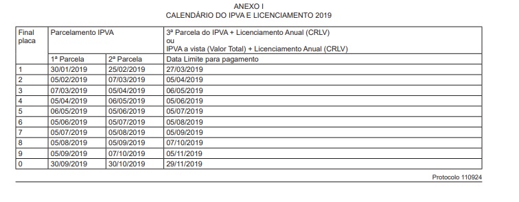 Nos dados apresentados, a Sefaz contabilizou que até quarta-feira (26), o estado já havia arrecadado 1,4 bilhão em 2018. Em 2019, os proprietários também poderão parcelar em até três vezes o valor do imposto. Confira abaixo o calendário do IPVA de 2019