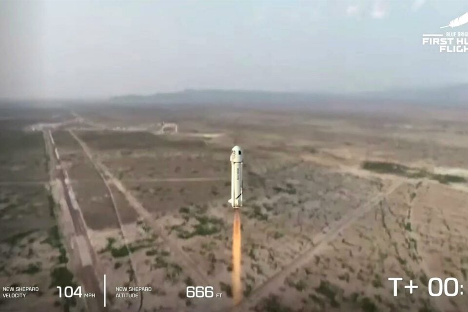 Celebrando os 52 anos do pouso da Apollo 11 na Lua, o americano Jeff Bezos, dono da Blue Origin, se tornou nesta terça (20) o segundo bilionário a voar ao espaço em sua própria espaçonave, que levou também o primeiro passageiro a pagar pela viagem suborbital. Foi o décimo-sexto voo bem-sucedido da cápsula New Shepard ao espaço, mas o primeiro a levar tripulação, marcando o início das operações comerciais da empresa –à frente da Virgin Galactic, do britânico Richard Branson, que ainda não levou ninguém que tenha de fato comprado passagem. (Bezos, por sinal, foi o primeiro a marcar a viagem, mas Branson decidiu jogar água no chope dele e voar primeiro com a nave VSS Unity, da Virgin Galactic, no último dia 11.)