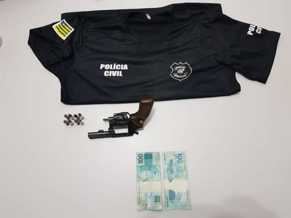Ele vestia uma camisa imitando o uniforme da Polícia Civil (PC) e se apresentou como delegado. Uma pessoa que passava pelo depósito, notou a situação estranha e fez denúncia na delegacia da cidade. Com o falso PC foram encontrados uma arma de fogo calibre .38, um celular e dinheiro.