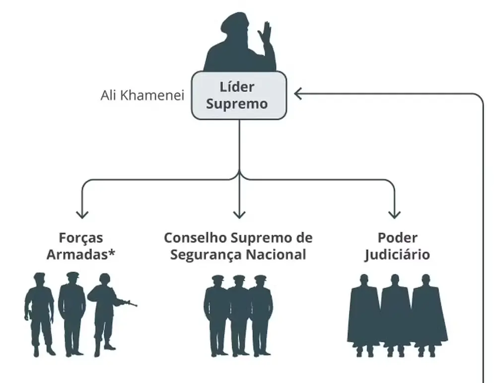 O aiatolá Ali Khamenei é a principal autoridade do Irã. Chefe de Estado e líder supremo em caráter vitalício, ele concentra o mais alto poder político e religioso do país. Cabe a ele nomear os comandantes das Forças Armadas e da Guarda Revolucionária, indicar integrantes do Judiciário para os postos mais relevantes e definir as diretrizes de política interna e externa.
