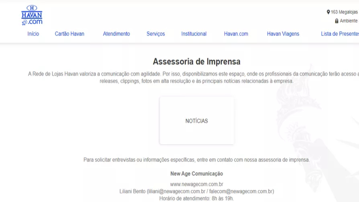 No entanto, Liliani consta no site da Havan como assessora de imprensa da empresa. Veja abaixo.