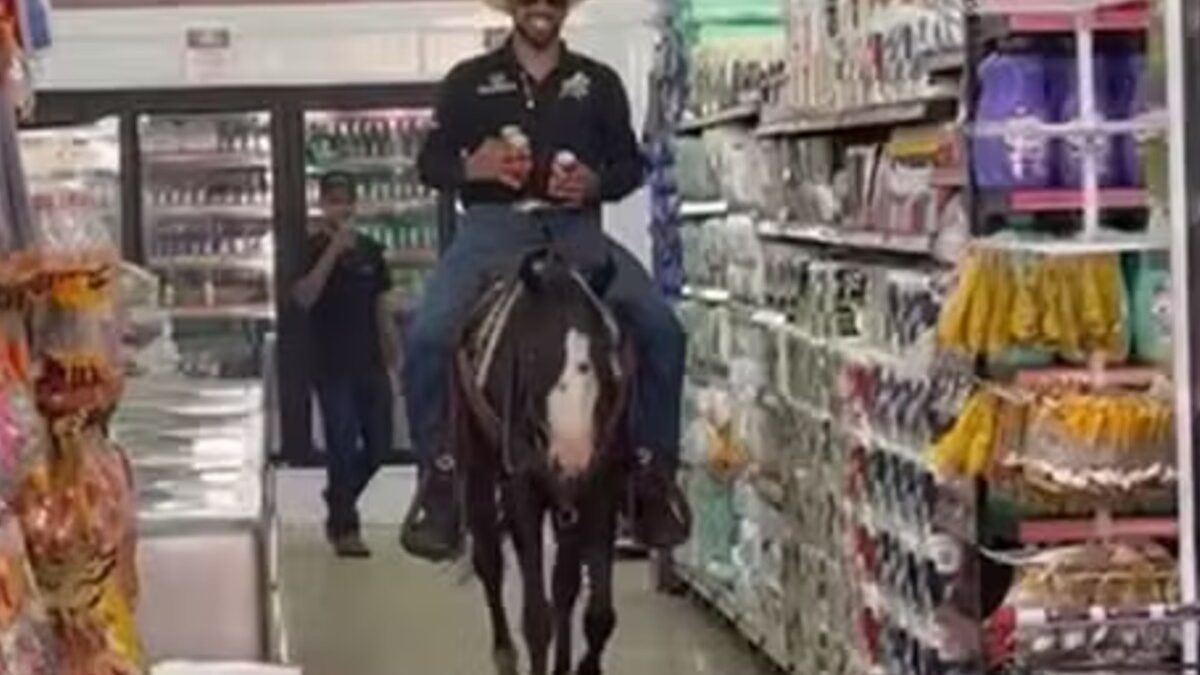 Estudante faz compras em supermercado de Nazário montado em cavalo; vídeo