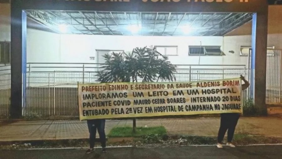 Uma família de São José do Rio Preto, no interior de São Paulo, apelou para uma faixa endereçada à Secretaria de Saúde para tentar conseguir uma vaga na UTI (Unidade de Terapia Intensiva) para o paciente Mauro César Soares, de 59 anos.