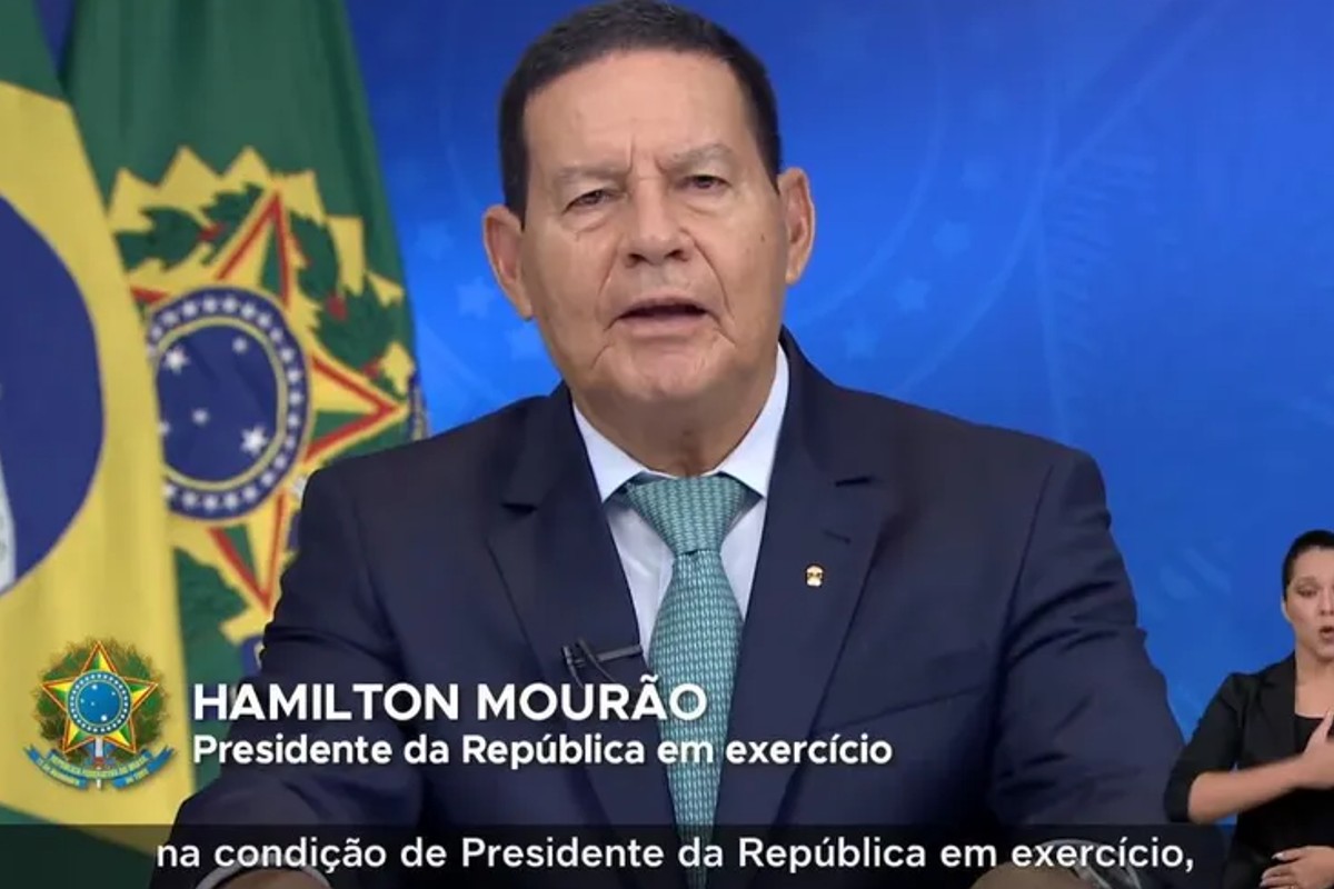No último dia de mandato, Mourão fez um pronunciamento em cadeia de rádio e TV com críticas a Bolsonaro e elogiando a alternância de poder. Ele estava como presidente em exercício no sábado, já que Jair Bolsonaro embarcou para Flórida, nos Estados Unidos, na última sexta-feira, acompanhado da primeira-dama, Michelle Bolsonaro, e da filha do casal, Laura, de 12 anos.