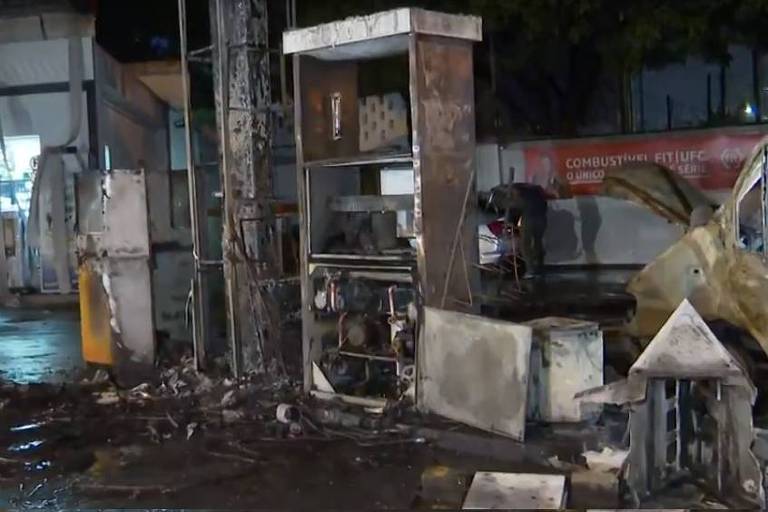Fogo em veículo atinge bomba de combustível e destrói posto em São Paulo