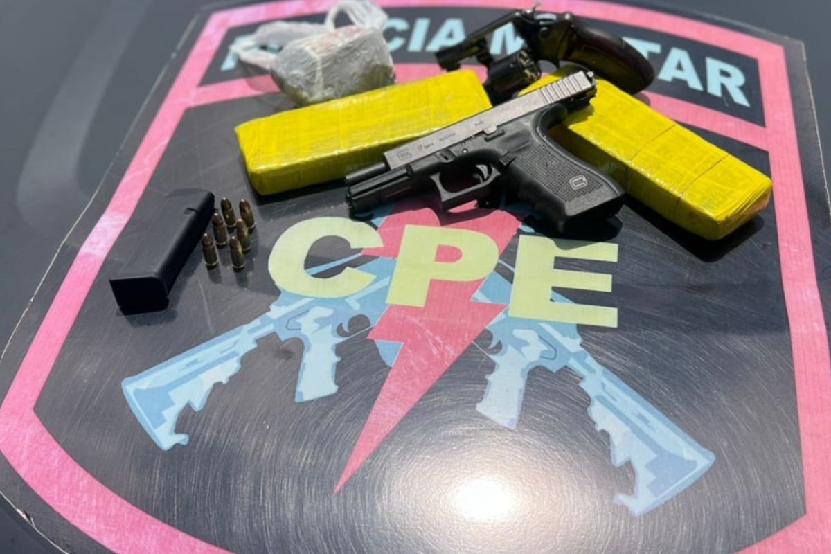 Na casa onde o foragido stava, foram apreendidos drogas, e duas armas de fogo
