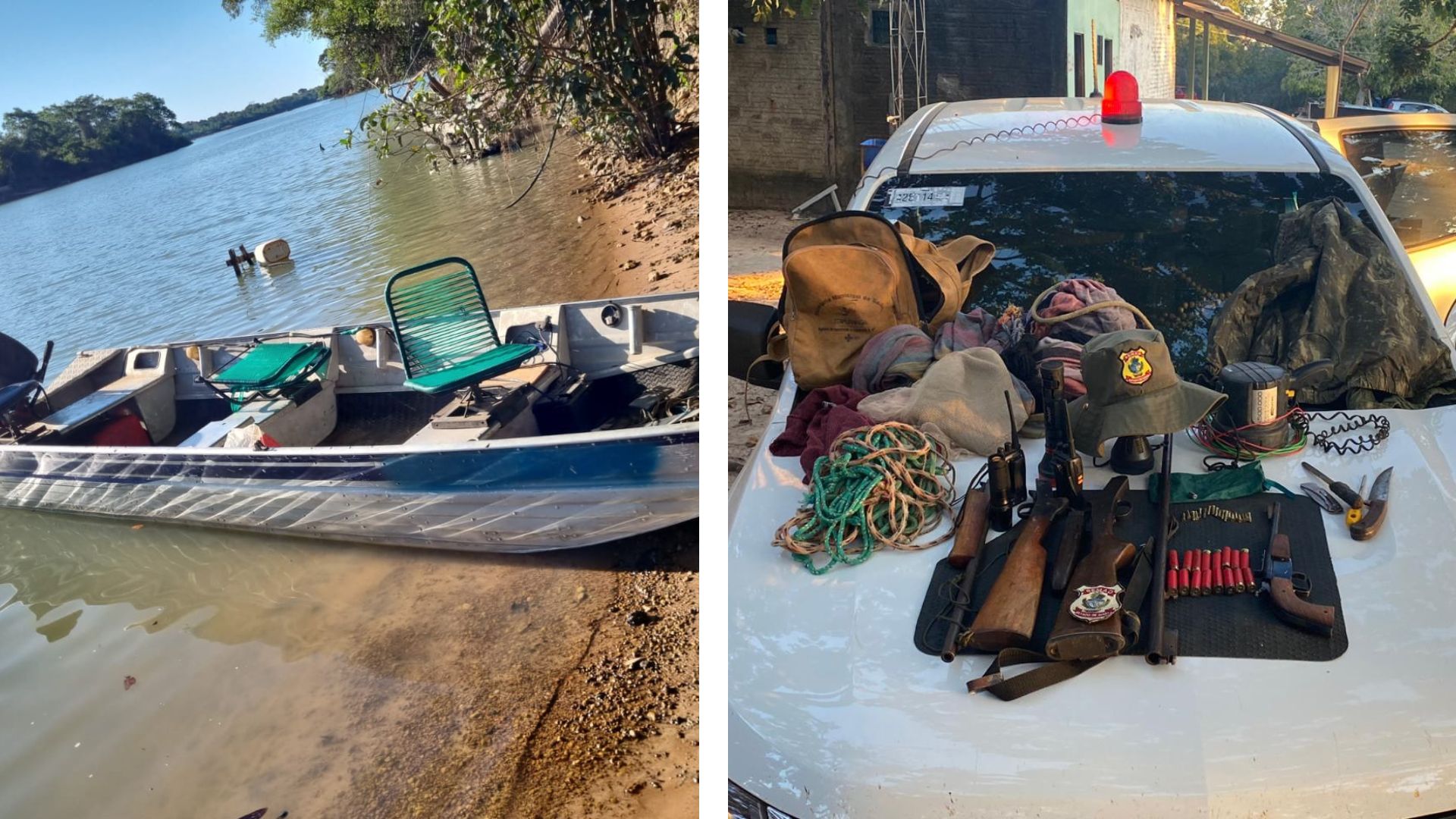 Durante a ação, foram apreendidas diversas armas, incluindo uma garrucha calibre .22, uma espingarda calibre .28, outra espingarda calibre .32, além de munições de diversos calibres. Também foram encontrados itens como facas, lanternas, redes de espera, rádios de comunicação, um canivete, uma chave de fenda, uma canoa, um motor e um tanque.