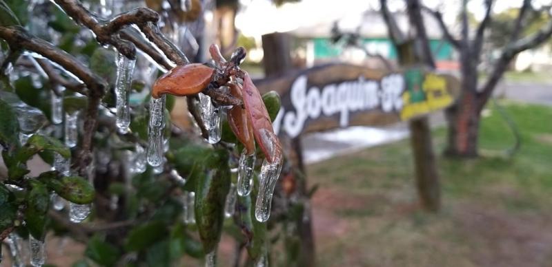 Na serra catarinense, ao menos 4 cidades tiveram temperaturas abaixo de 0ºC: Monte Castelo (-2,5ºC), Urubici (-2,9ºC), Urupema (-3,9ºC) e São Joaquim, que chegou a registrar -4ºC. Na cidade serrana, árvores e termômetros congelaram.