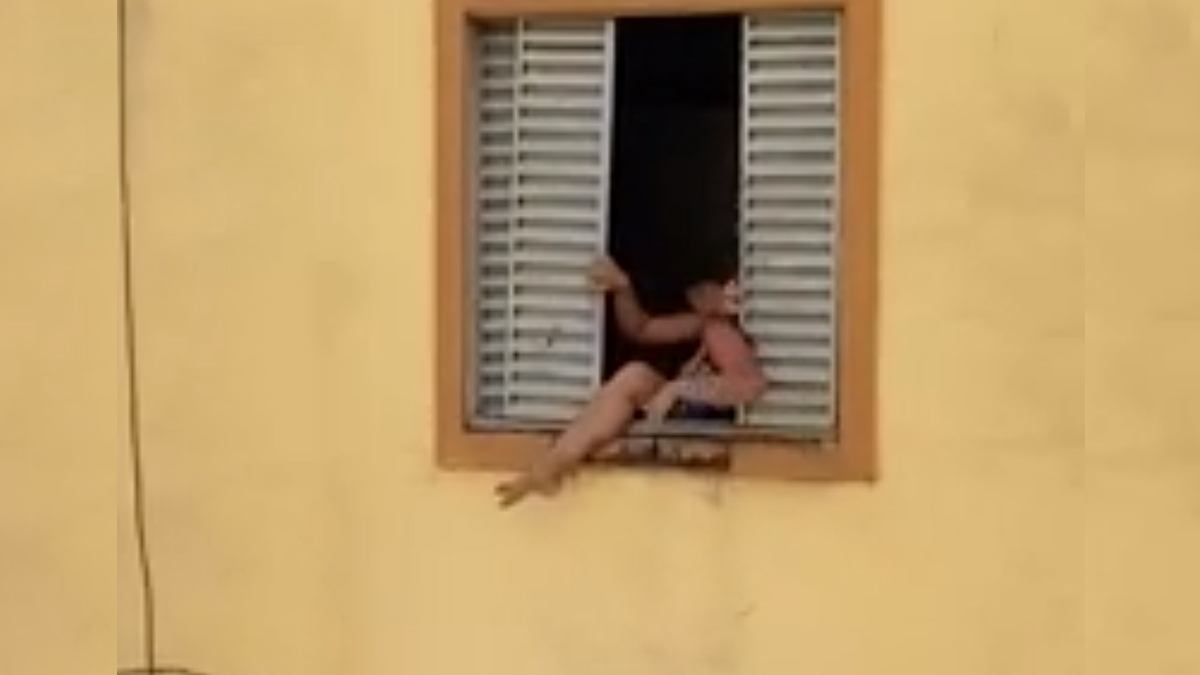Grávida tenta pular janela de prédio para escapar de agressão de marido; veja vídeo