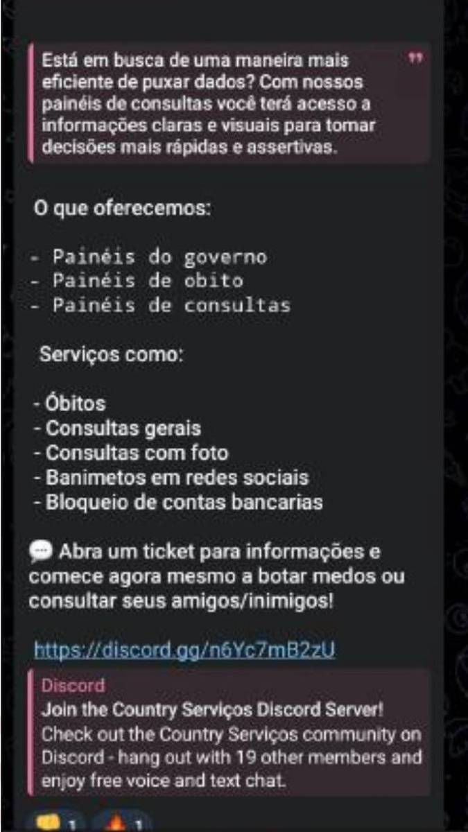 “Ele passou a investir menos contra as vítimas e passou a ir para o crime [de dados] para ganhar dinheiro, sem ter que fazer com que as vítimas se machucassem”, diz. Em um dos anúncios, os criminosos prometiam que os usuários tivessem “acesso a informações claras e assertivas”.