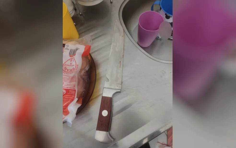 A mulher foi encontrada sem vida do lado de fora da casa, parcialmente vestida, com ferimentos de faca.